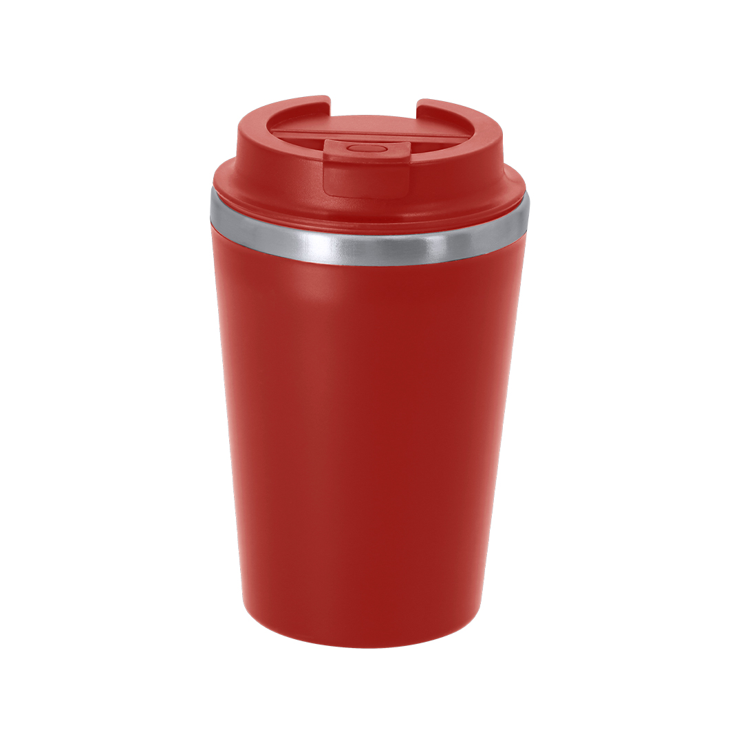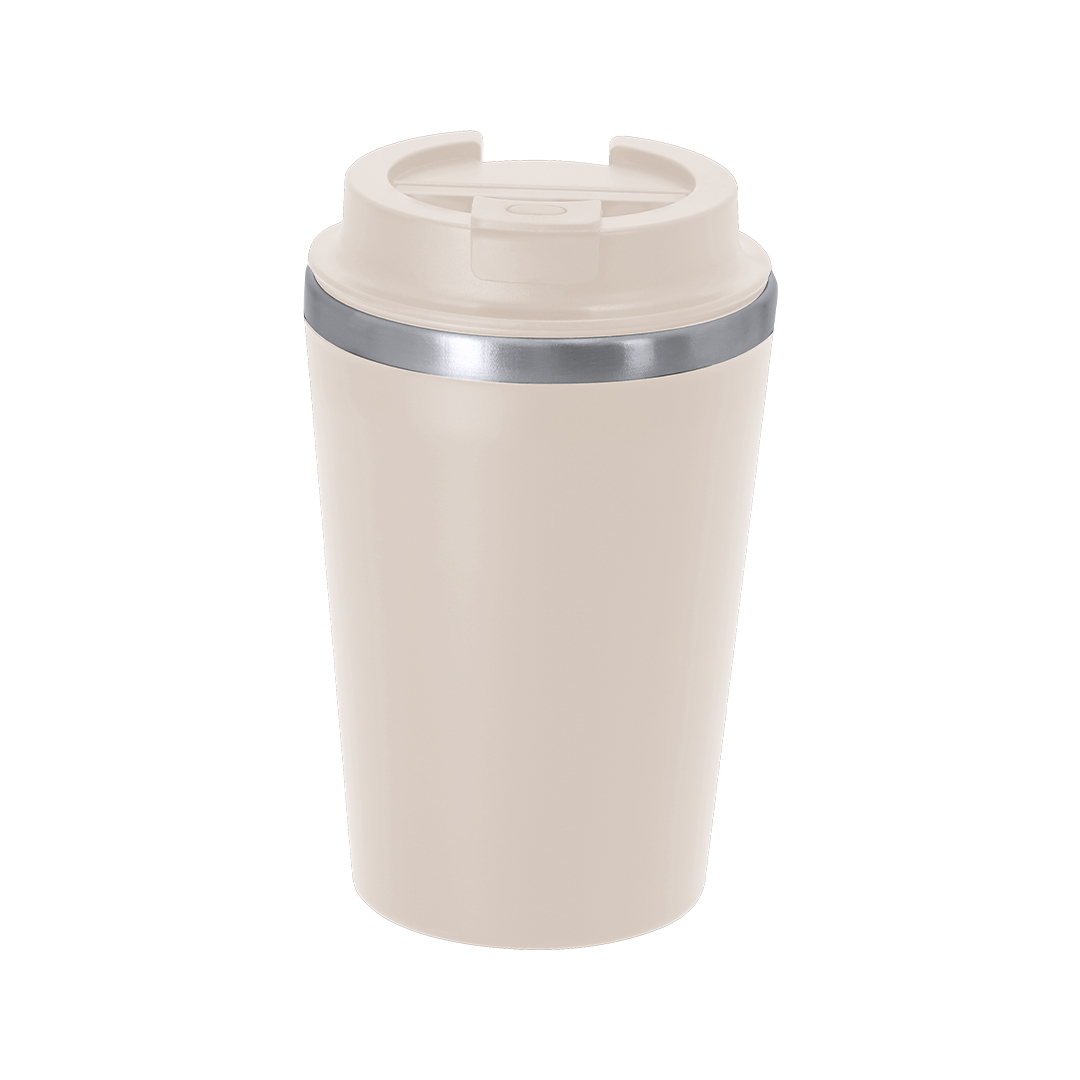 Vaso térmico con capacidad de 350 ml, fabricado en Acero Inoxidable en interior y exterior de PP. Tiene doble pared para mantener la temperatura interior. Cuenta con tapadera de seguridad para un cierre hermético.